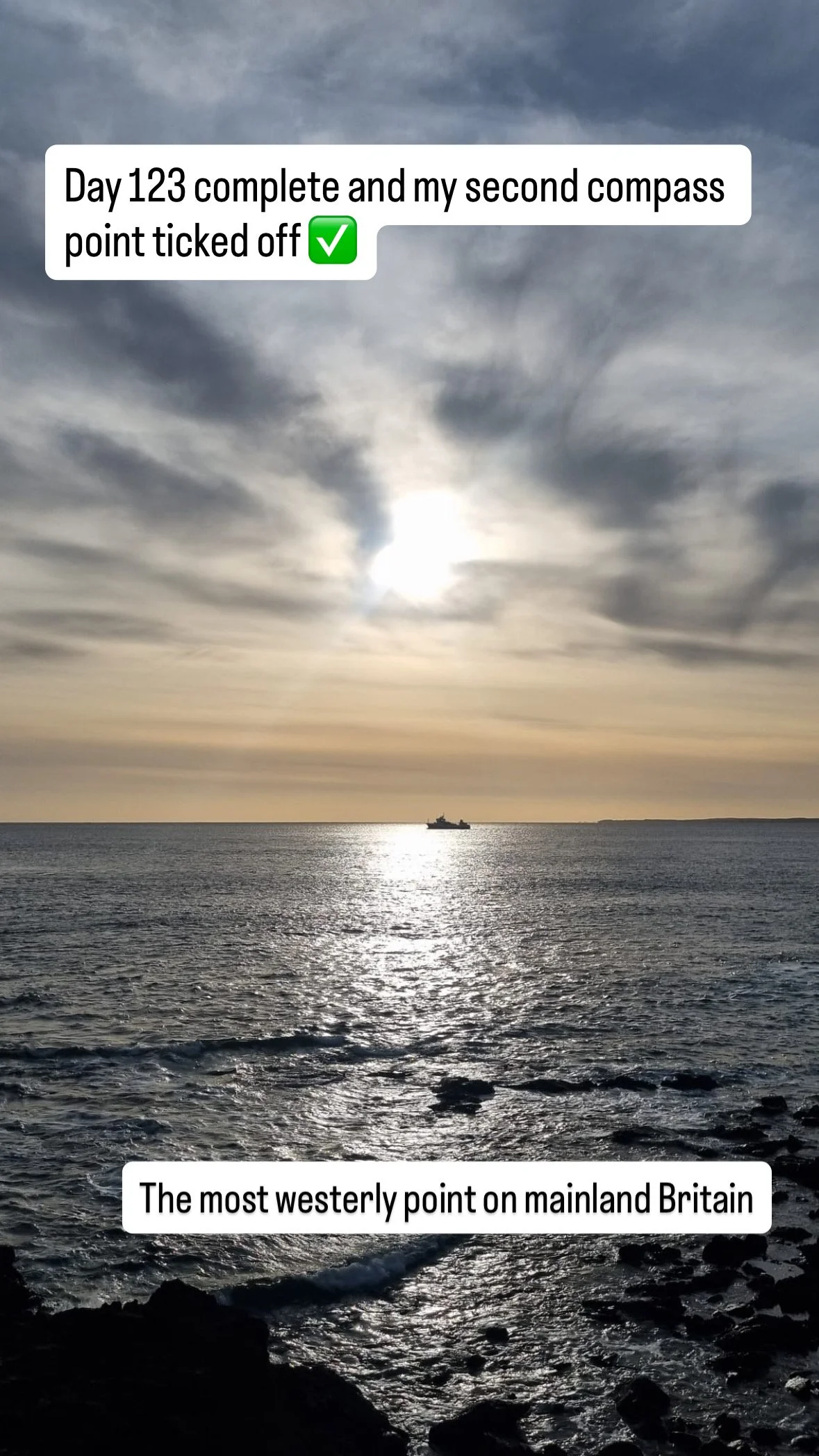 I don’t know if I would have bothered with this peninsula if it wasn’t for Nick, who made sure I knew where all the compass points were when we sat down to plan my route. He is particularly sensitive about the most westerly point because he missed it and had to drive back. But not many people who run the coastline of Britain come all the way out here because it is just one road. In a crazy coincidence, my time to run the Strava segment out to the lighthouse at the most westerly point was less than 30s short of Nick’s time.