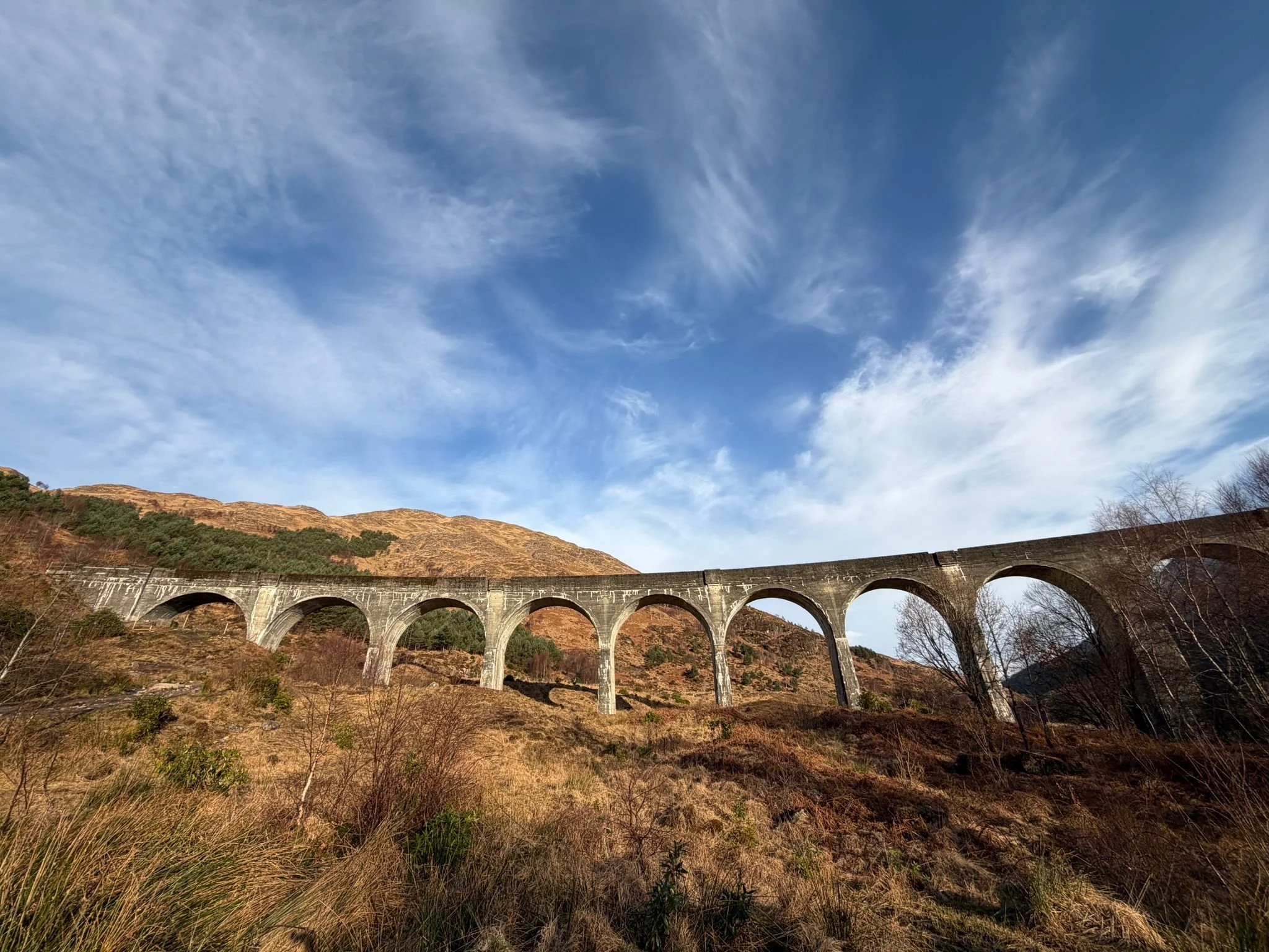 Glenfinnan Viaduct was used in the filming of Harry Potter. The trainline which runs over the viaduct is the one that the Hogwarts Express travels along and the viaduct features prominently in the scene where Harry and Ron fly a car to school.